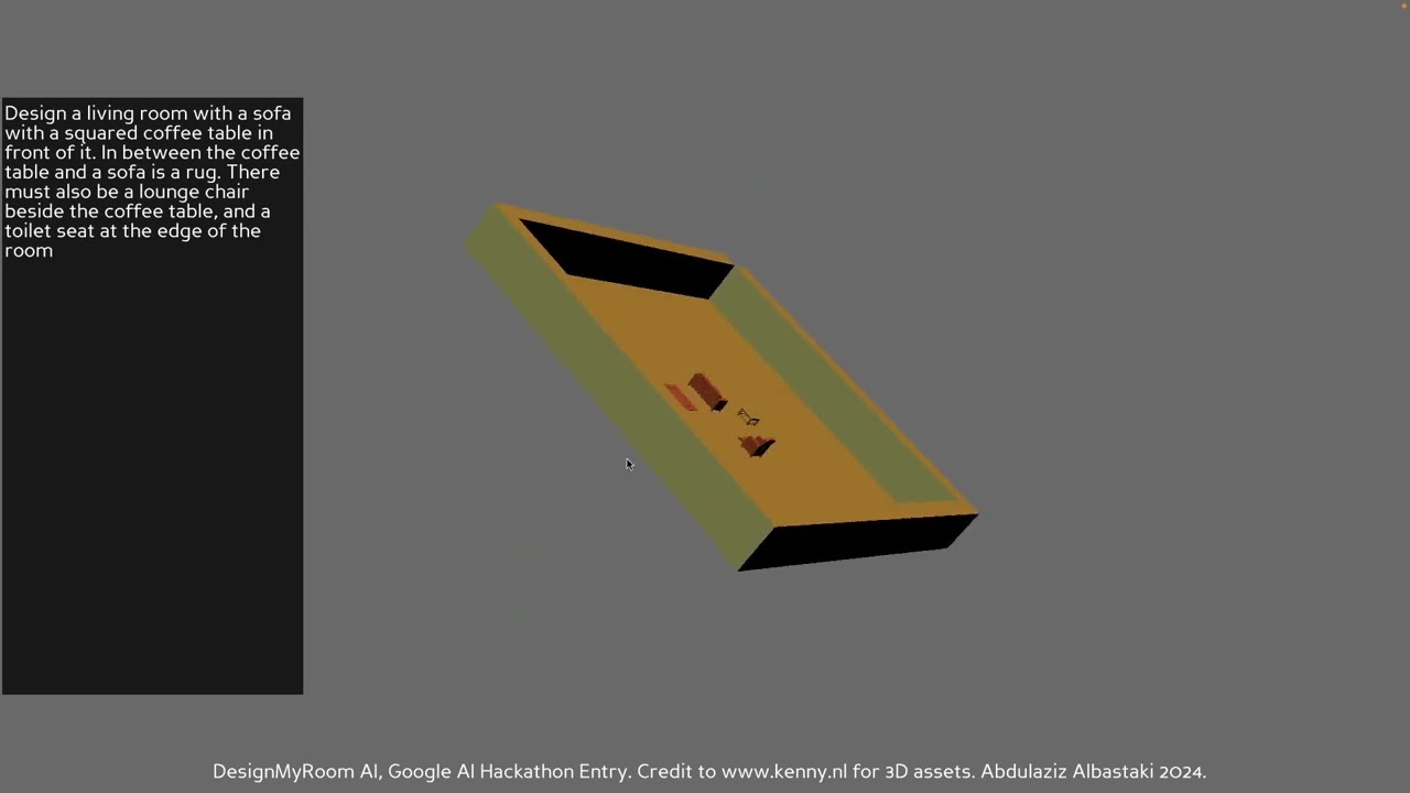 DesignMyRoom takes in a user input, and decorates a room based on that input using Google Gemini and Kenny’s Incredible Furniture Kit.
