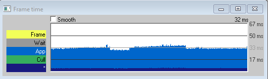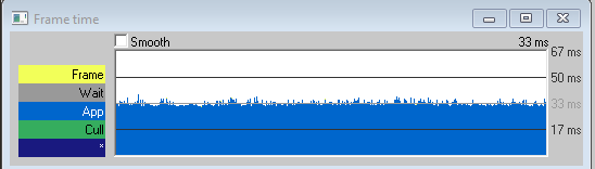 For a clearer view, I’d suggest looking at PStats–and I recommend the new PStats, if you’re willing–to get a more direct idea of where the bottleneck lies.